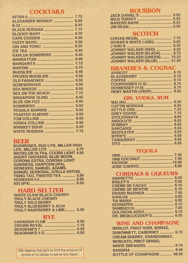 ALL MENUS WILL UPDATED TO REFLECT PRICE CHANGES AS OF NOVEMBER 21, 2025. Please check with your server for the current price.